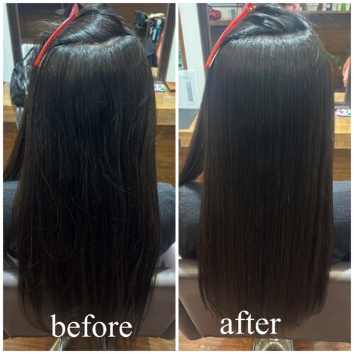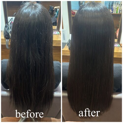 お写真でも分かるように、手触りやまとまり、ツヤ感が大きく変わります。