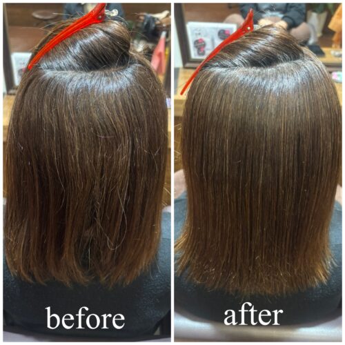 このような髪質の場合、クセが強くても薬剤のパワーにしっかり耐えられるため、きれいに伸ばすことができます。