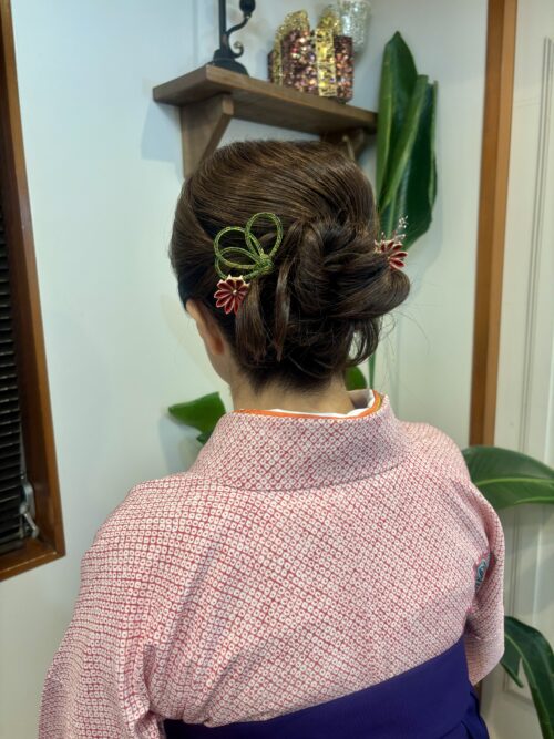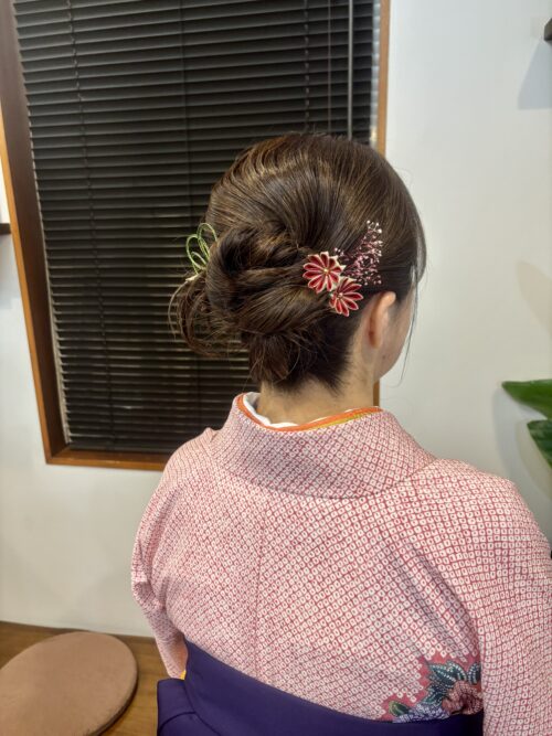 お客様は学校の先生で、お着物に合わせたヘアスタイルに仕上げました。