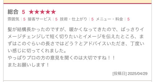 ホットペッパーからのご予約のお客様は口コミが書けますので、ぜひお声をお聞きかせくださいね^o^
