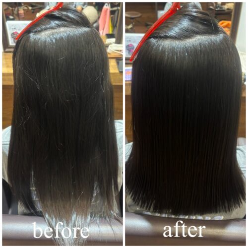 前回の施術から半年以上経っていますが、ストレート部分はくせ戻りもなく、とても綺麗な状態をキープされていました。