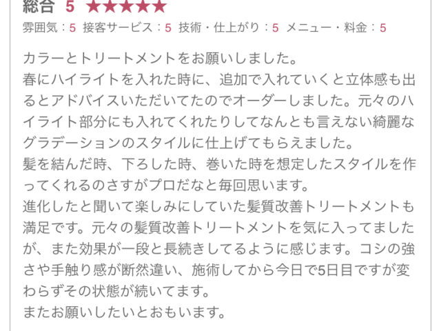 おはようございます♪ 昨日はストレートパーマ、髪質改善トリートメント、縮毛矯正とleaのイチオシメニューがたく... > 続きを読む